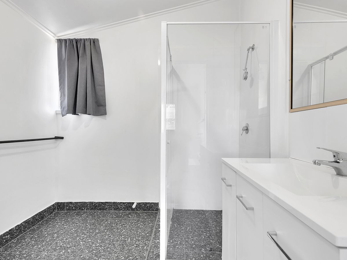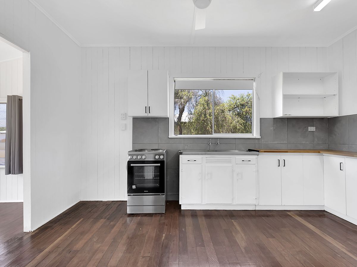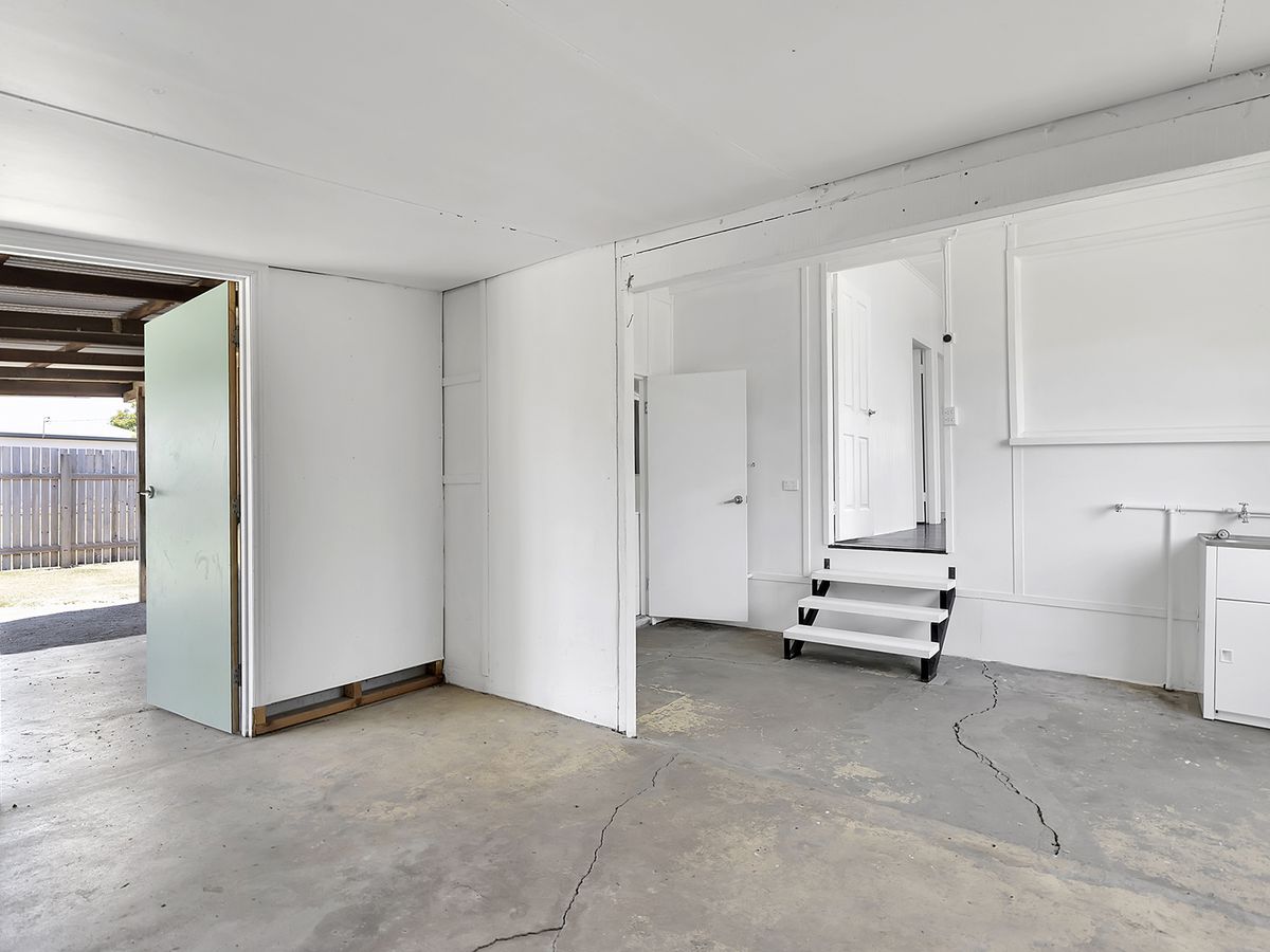 The house itself has been painted and partly renovated (new bathroom etc). It has two bedrooms, a front room that could be used as a lounge, a kitchen/dining area and a downstairs area that can be used for a family room. There is also a laundry and a carport.