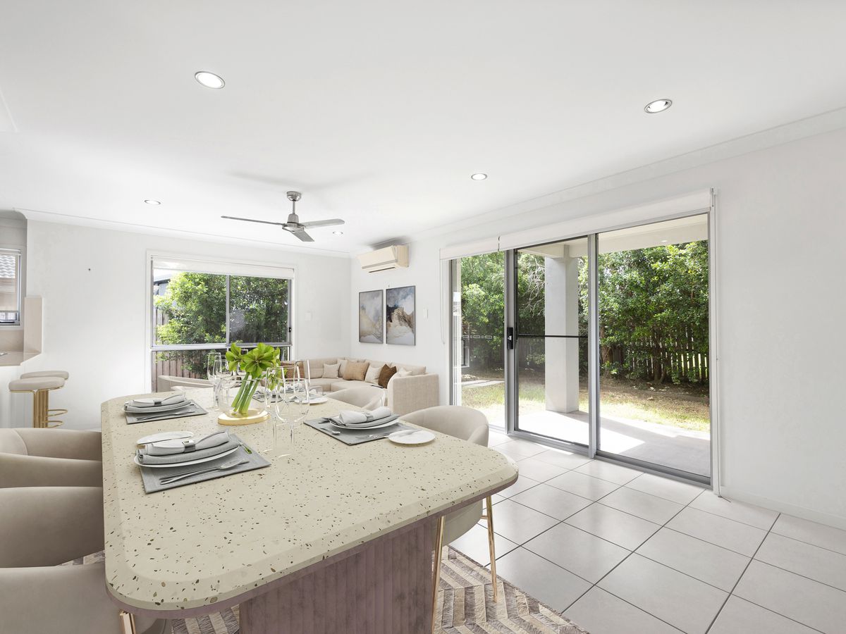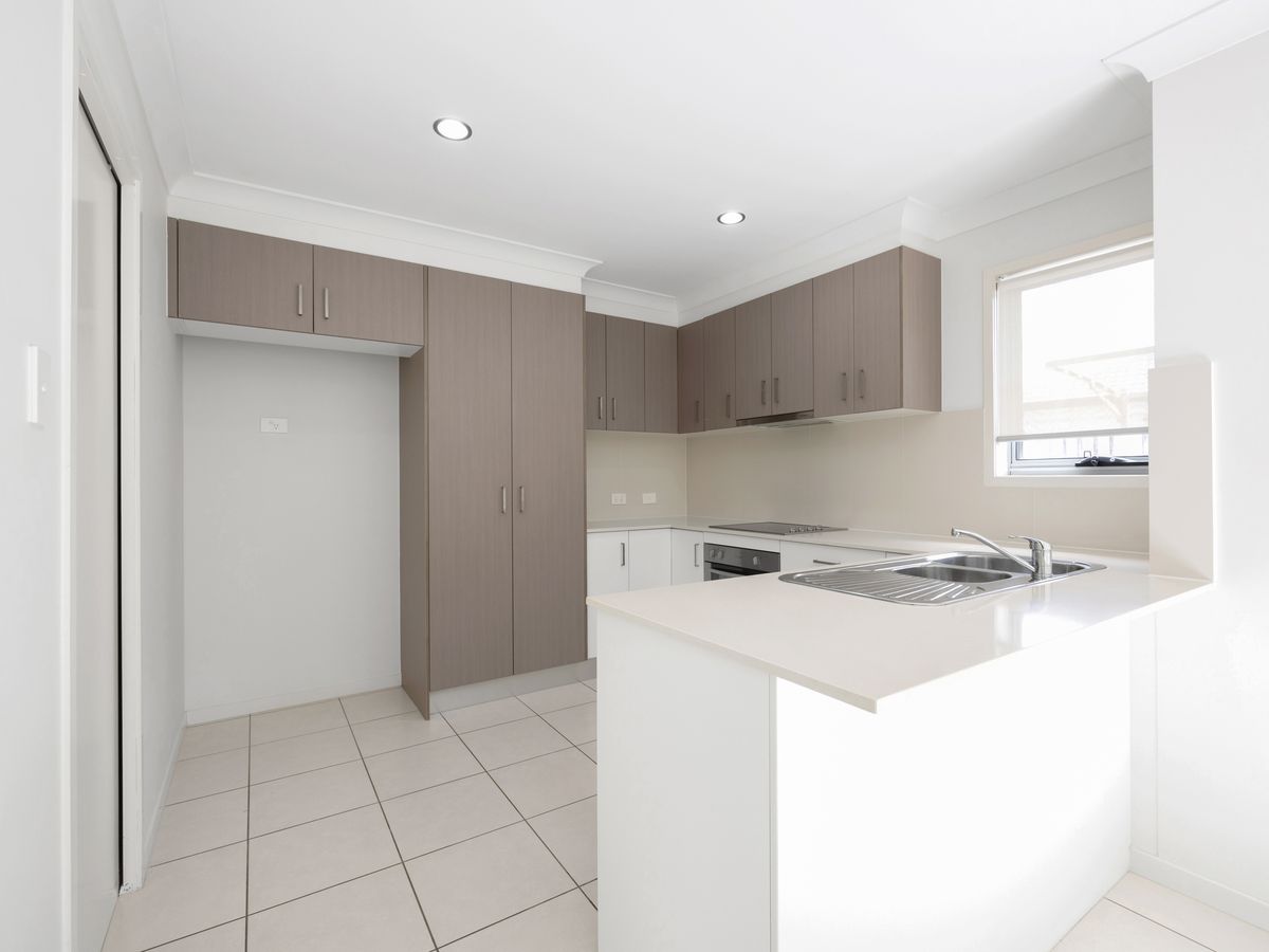Downstairs, the open-plan living, dining and kitchen area flows naturally to a covered alfresco and private courtyard, creating a practical indoor-outdoor connection ideal for low-maintenance living. The kitchen includes electric appliances, a double sink, breakfast bar seating and ample storage, making it suitable for everyday living and long-term tenancy.
