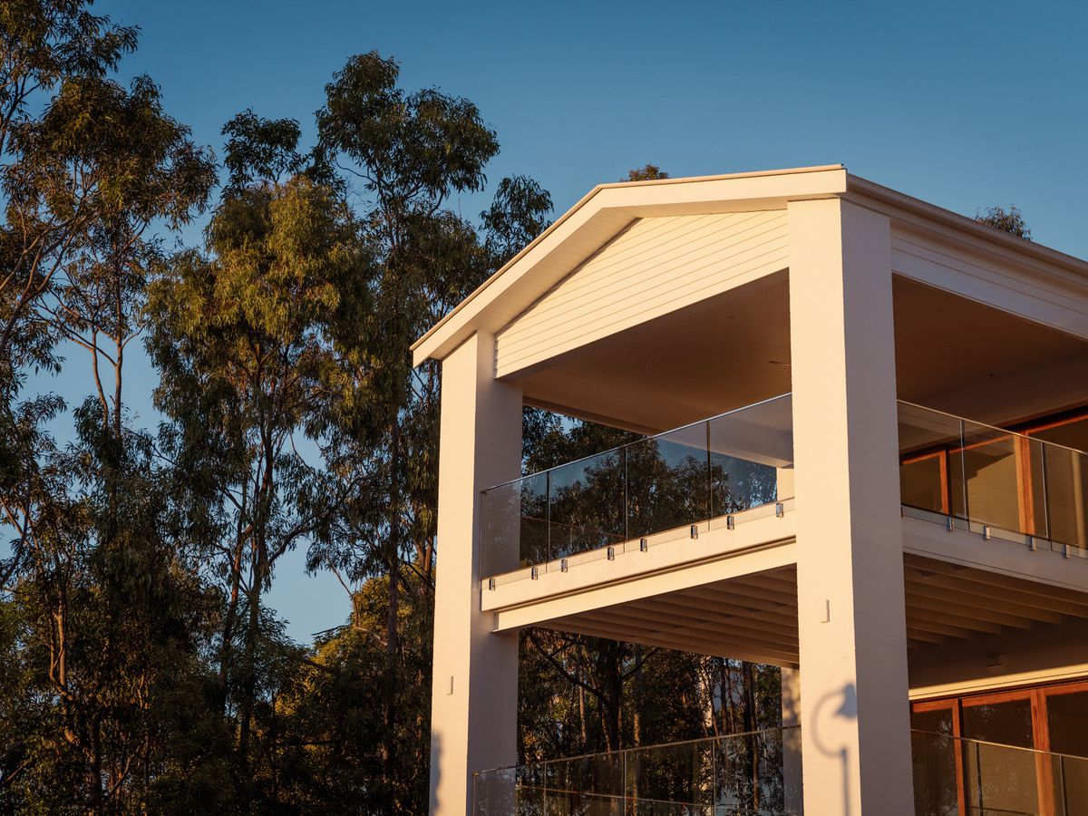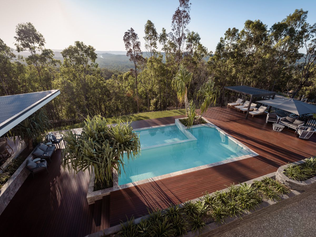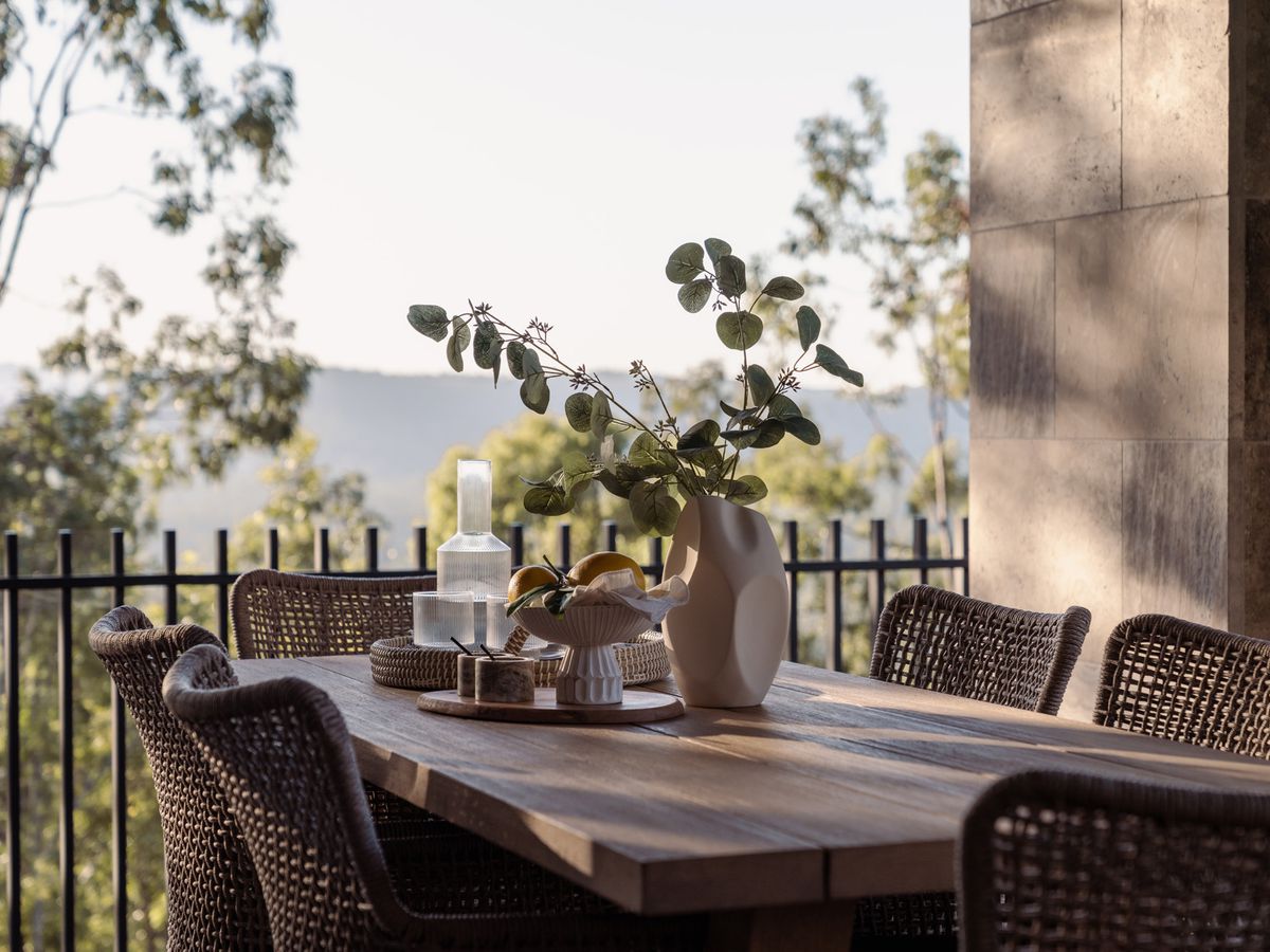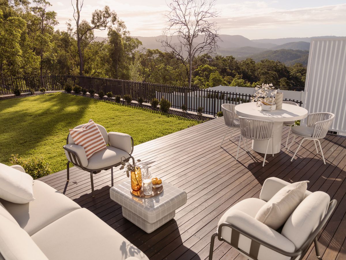 Inside, meticulous attention to detail defines every space — from the warmth of engineered timber flooring to the soaring three-metre ceilings that enhance natural light and openness. The expansive open-plan living area is framed by striking Rosewood timber sliding doors, seamlessly extending to a covered outdoor deck that embraces the natural surrounds.